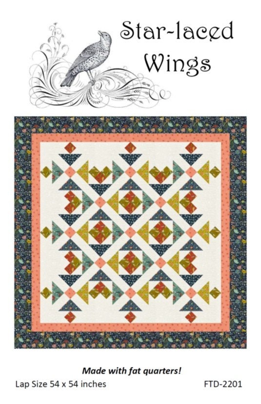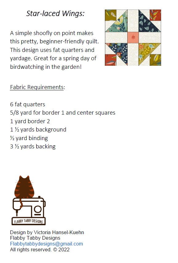 Star-laced Wings quilt pattern – hard copy (paper) – by Flabby Tabby Designs. Makes a 54 x 54 inch lap quilt.