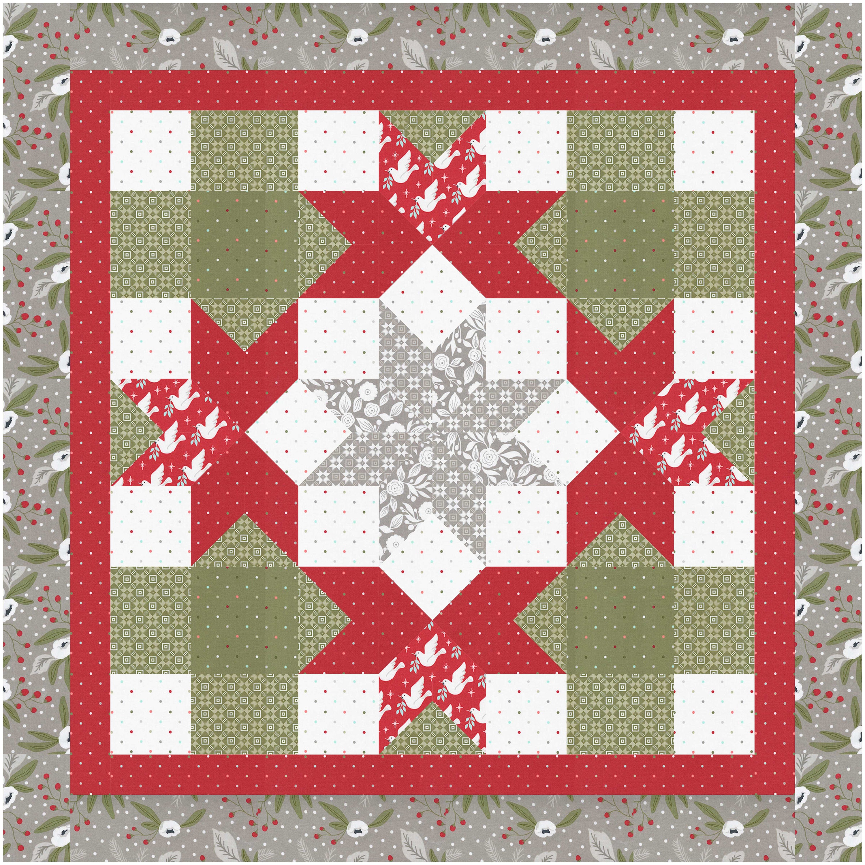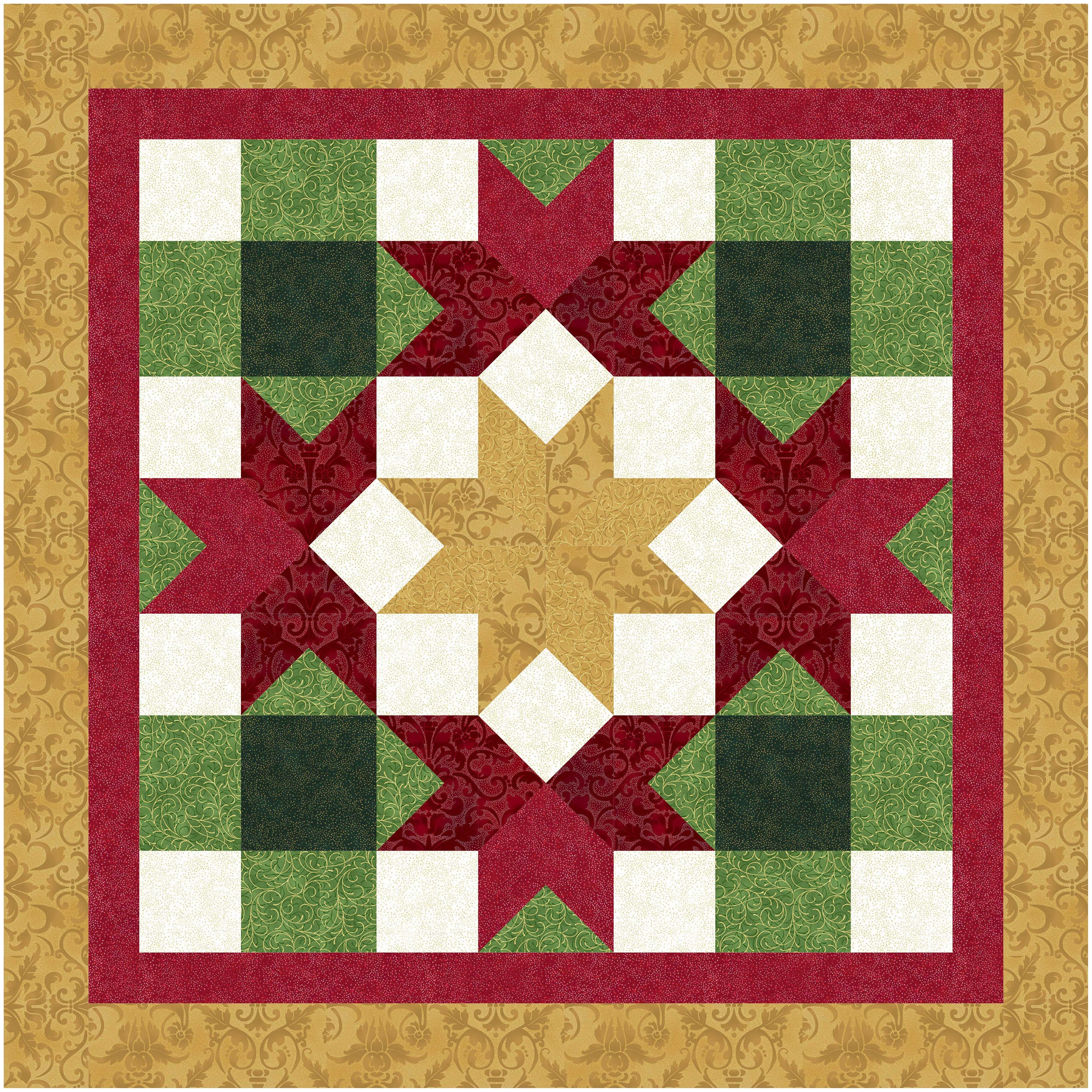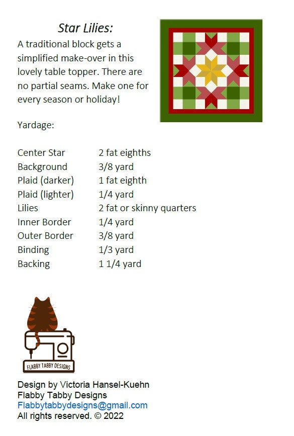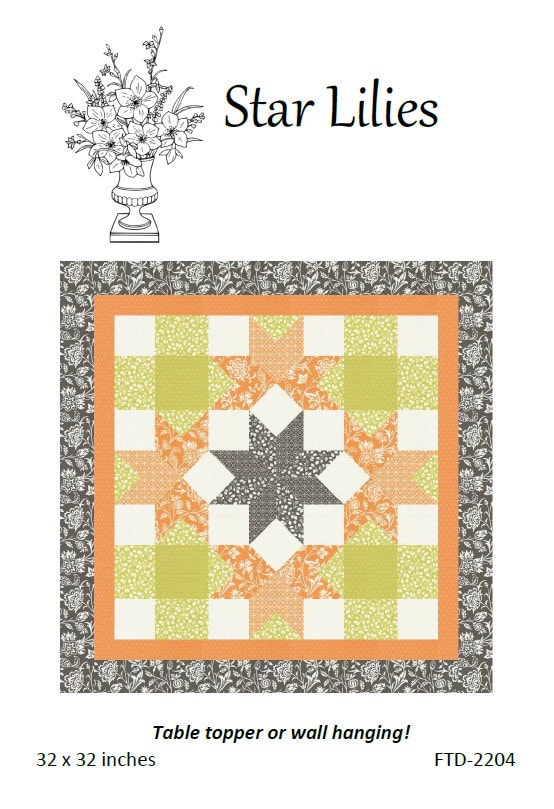 Star Lilies Quilt Pattern by Flabby Tabby Designs – paper/hard copy pattern. Makes a 32 x 32 inch table topper or wall hanging. Great for the holidays!