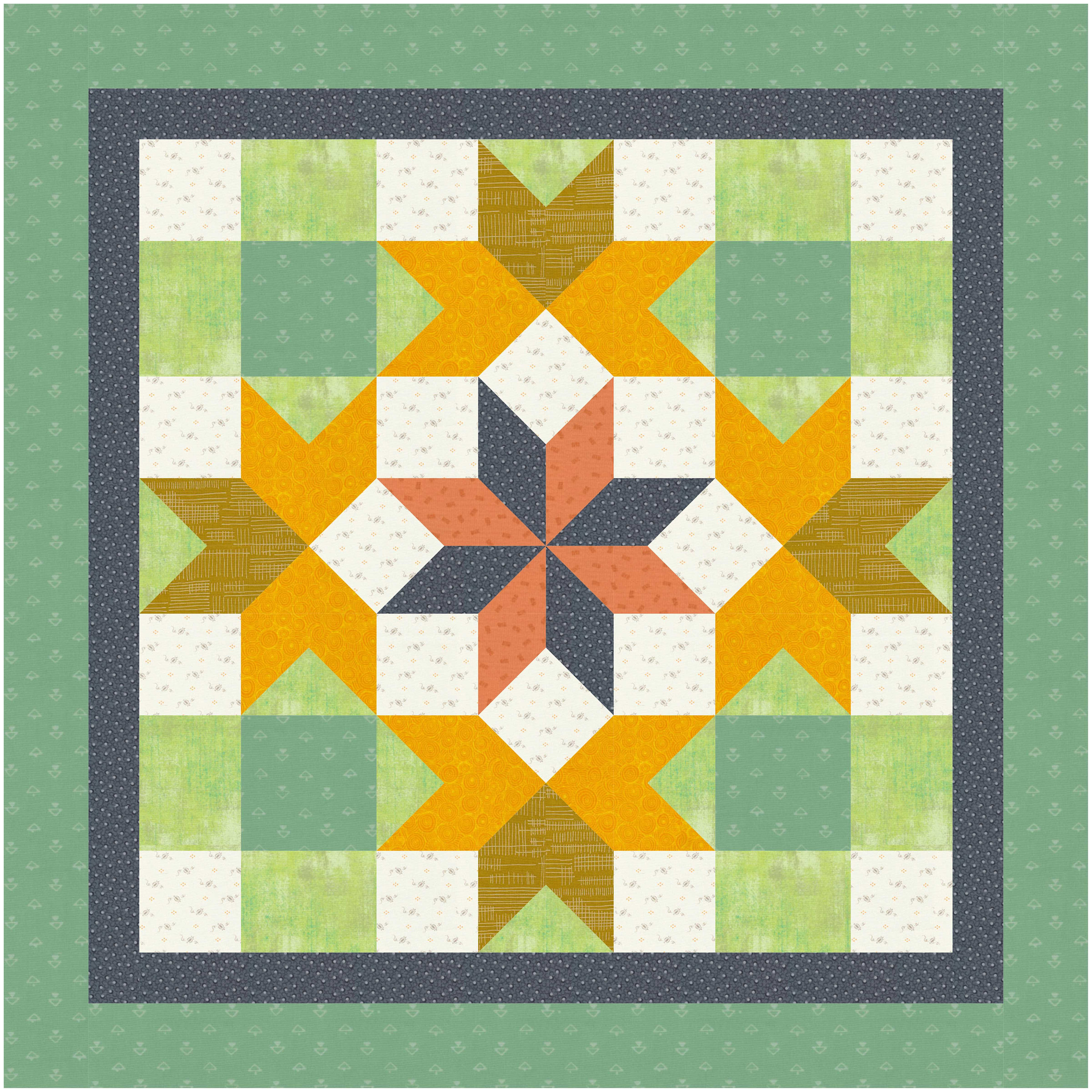 Supplies need for this quilt are basic rotary cutting, sewing, and quilting supplies. A 12 ½ inch square quilter’s ruler is very useful for this design.