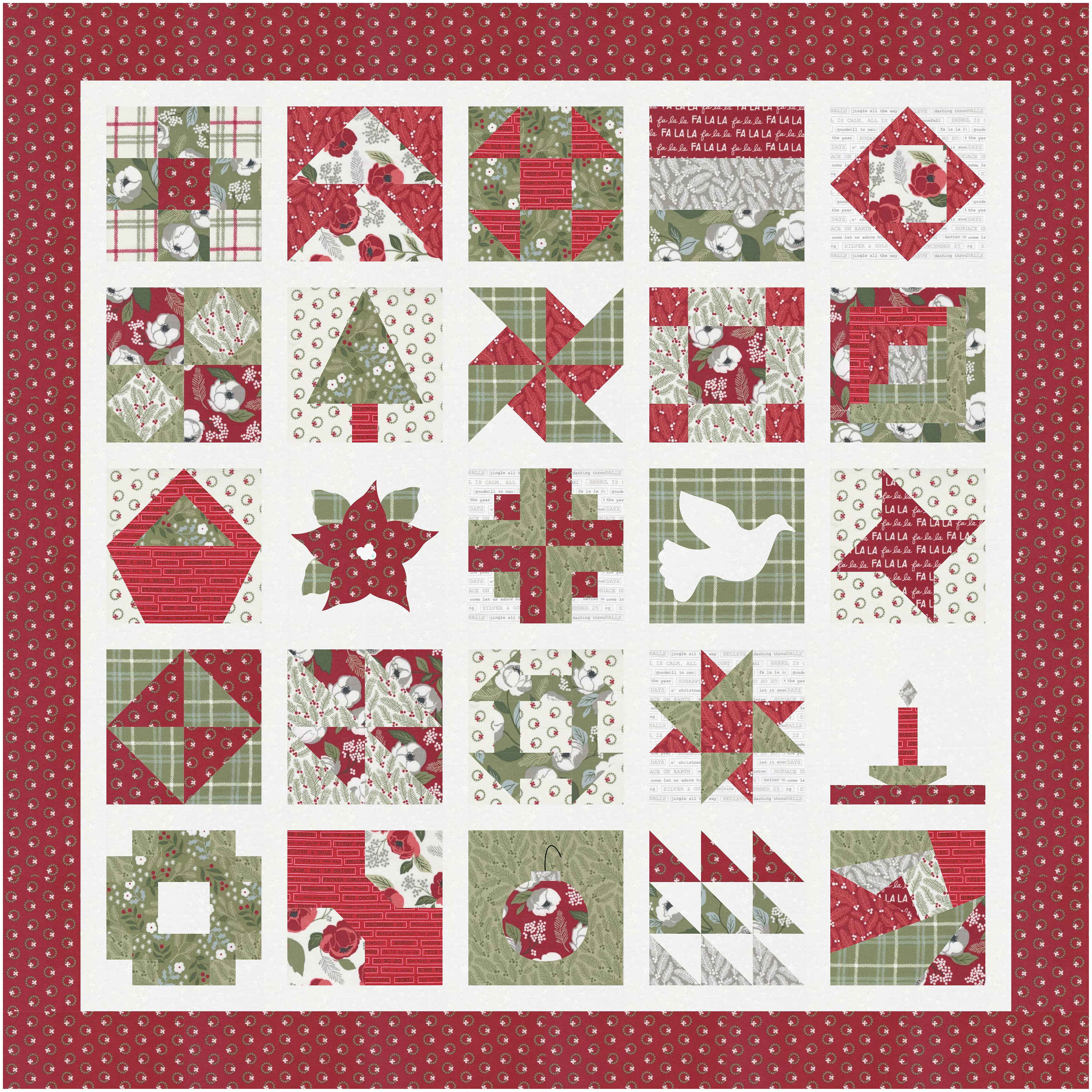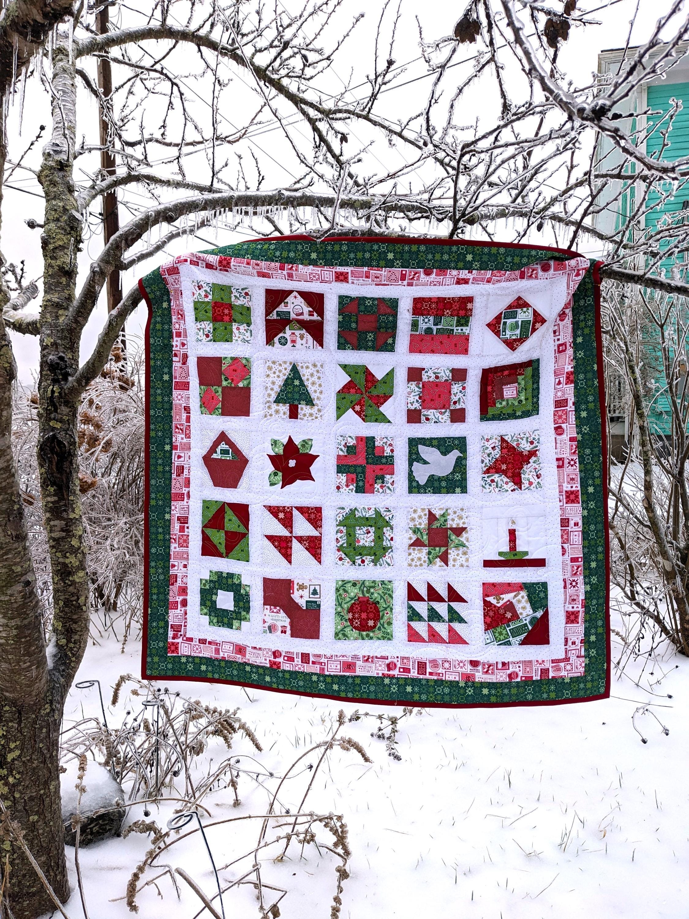 A Quilter’s Christmas Advent! 25 merry little blocks for a merry little Christmas! Make this sampler in wall-hanging or lap size. Choose to make it all at once or one block a day for the Christmas season. It’s a fun quilter’s countdown of blocks! Techniques include basic piecing, appliqué, and paper-piecing. Each unfinished block in this sampler measures 6 ½ inches. This digital file has 37 pages.