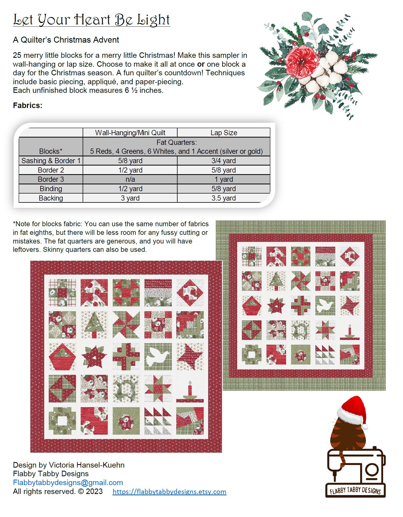 Let Your Heart Be Light quilt pattern by Flabby Tabby Designs – This is a paper/hard copy physical pattern.