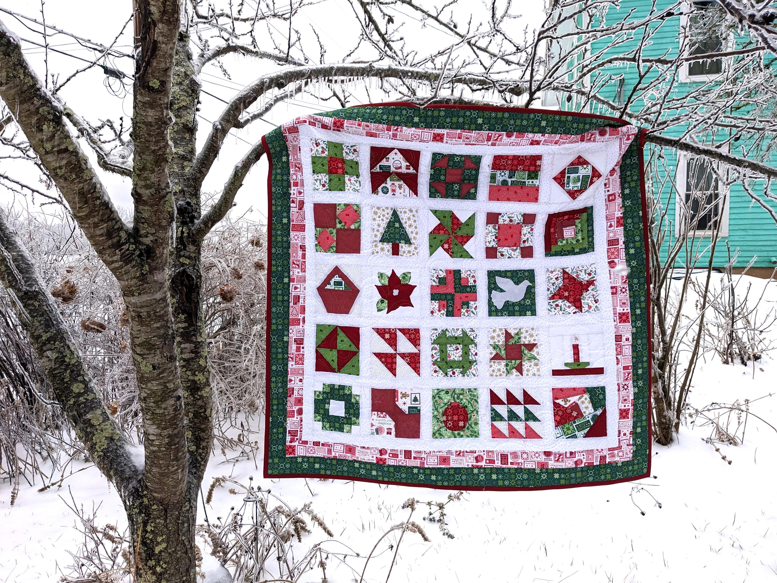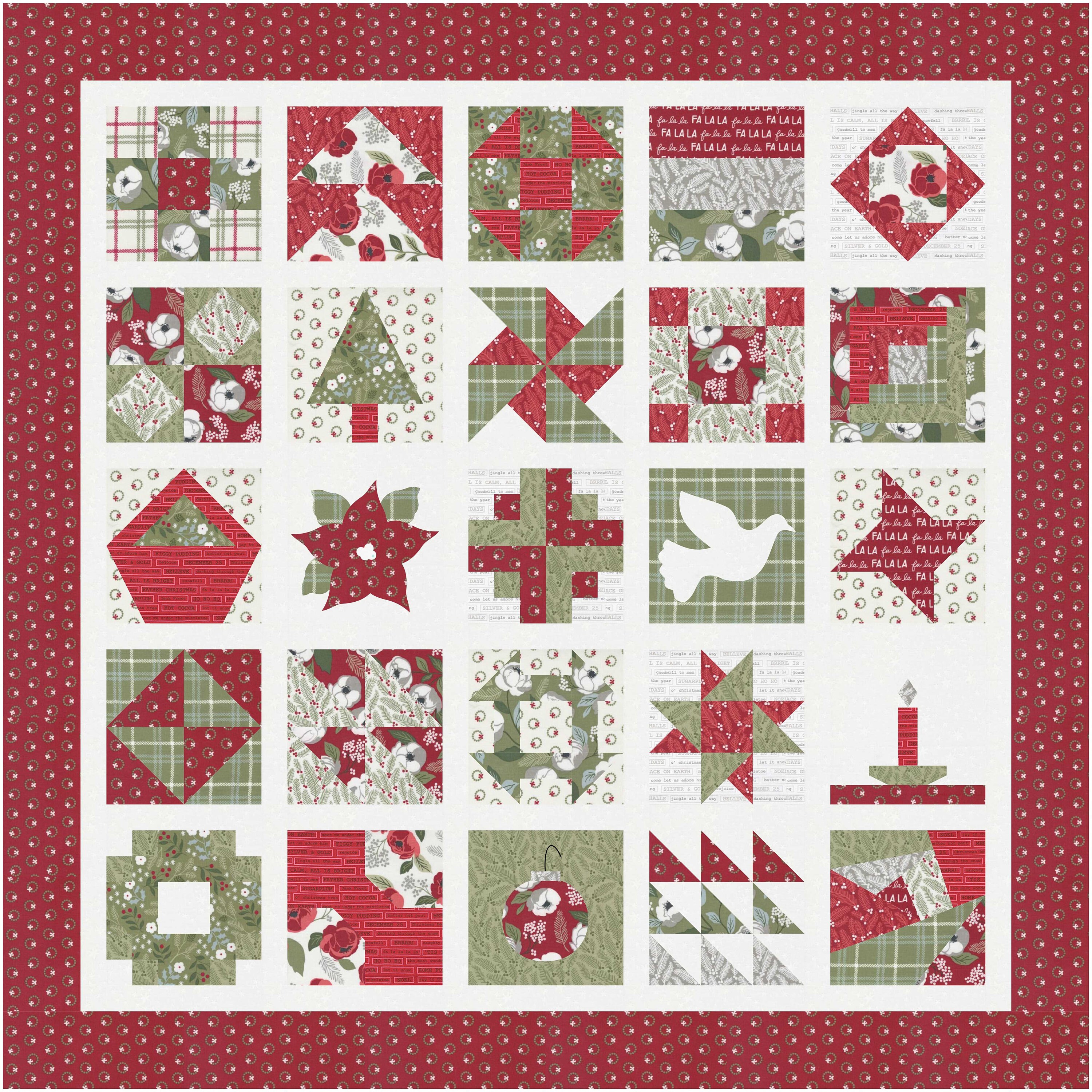 A Quilter’s Christmas Advent! 25 merry little blocks for a merry little Christmas! Make this sampler in wall-hanging or lap size. Choose to make it all at once or one block a day for the Christmas season. It’s a fun quilter’s countdown of blocks! Techniques include basic piecing, appliqué, and paper-piecing. Each unfinished block in this sampler measures 6 ½ inches.