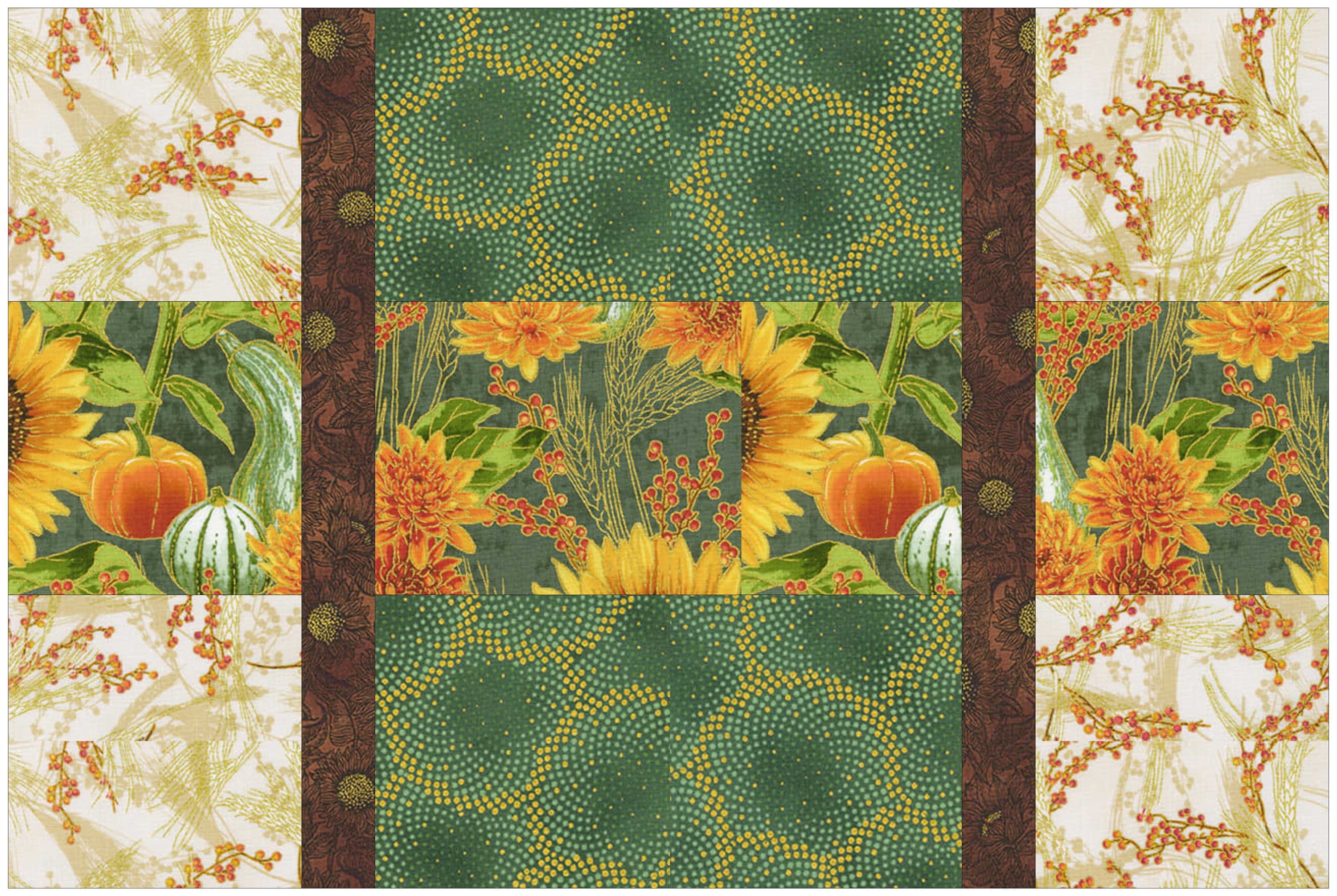 Supplies needed for this quilt are basic rotary cutting, sewing, and quilting supplies. This pattern assumes at least beginner level quilting and sewing experience. The pattern includes instructions for piecing the placemat tops. Quilting and binding are up to you.