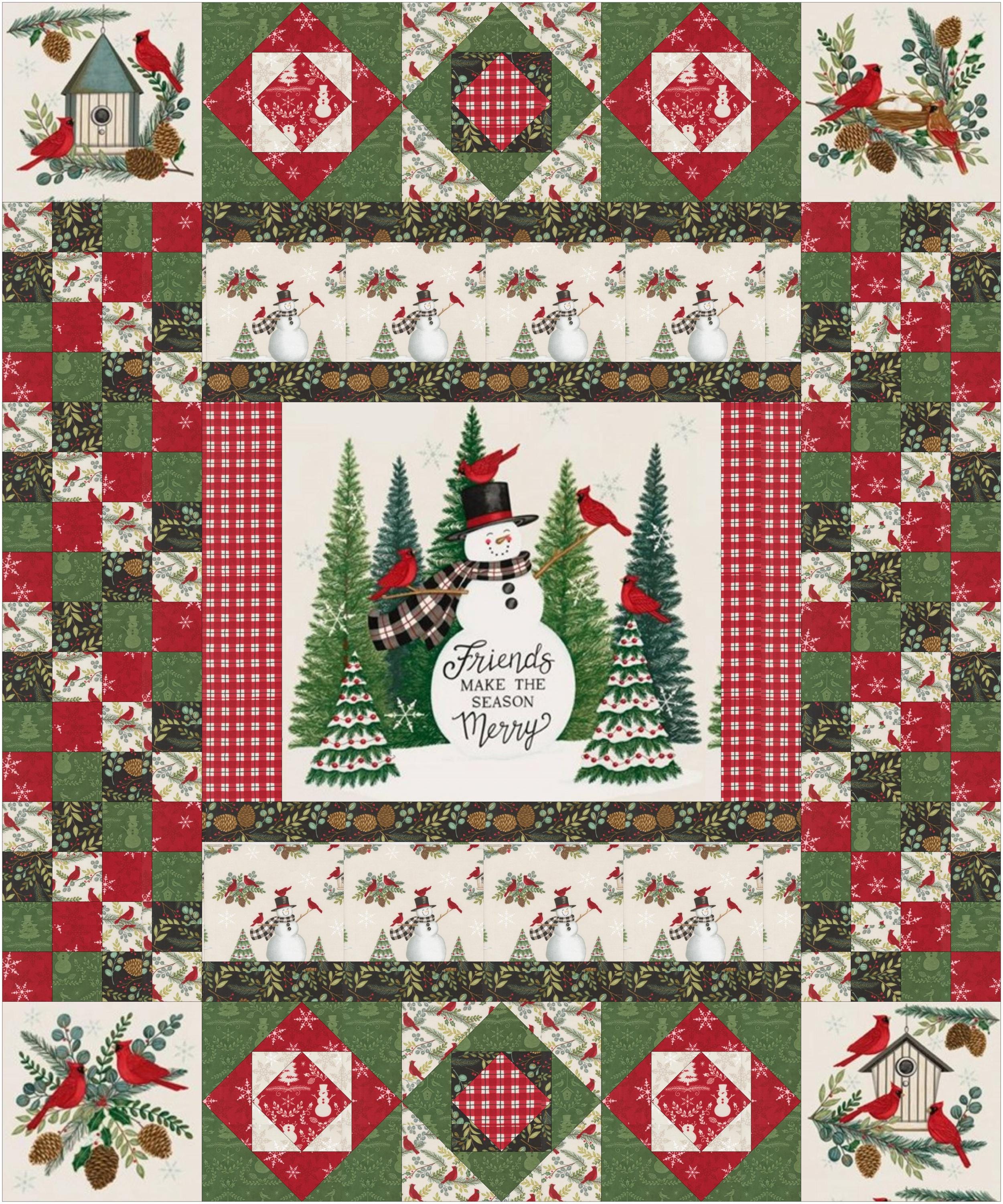 This digital pattern is for a cozy little lap quilt made with a panel. Designed for the Winter Friends panel by Deb Strain, but you can use any similar sized panel OR a large print focus fabric. This pattern is beginner friendly and made for quilters. It’s quick to work up on a cold winter weekend – What if Spring is late? No problem.