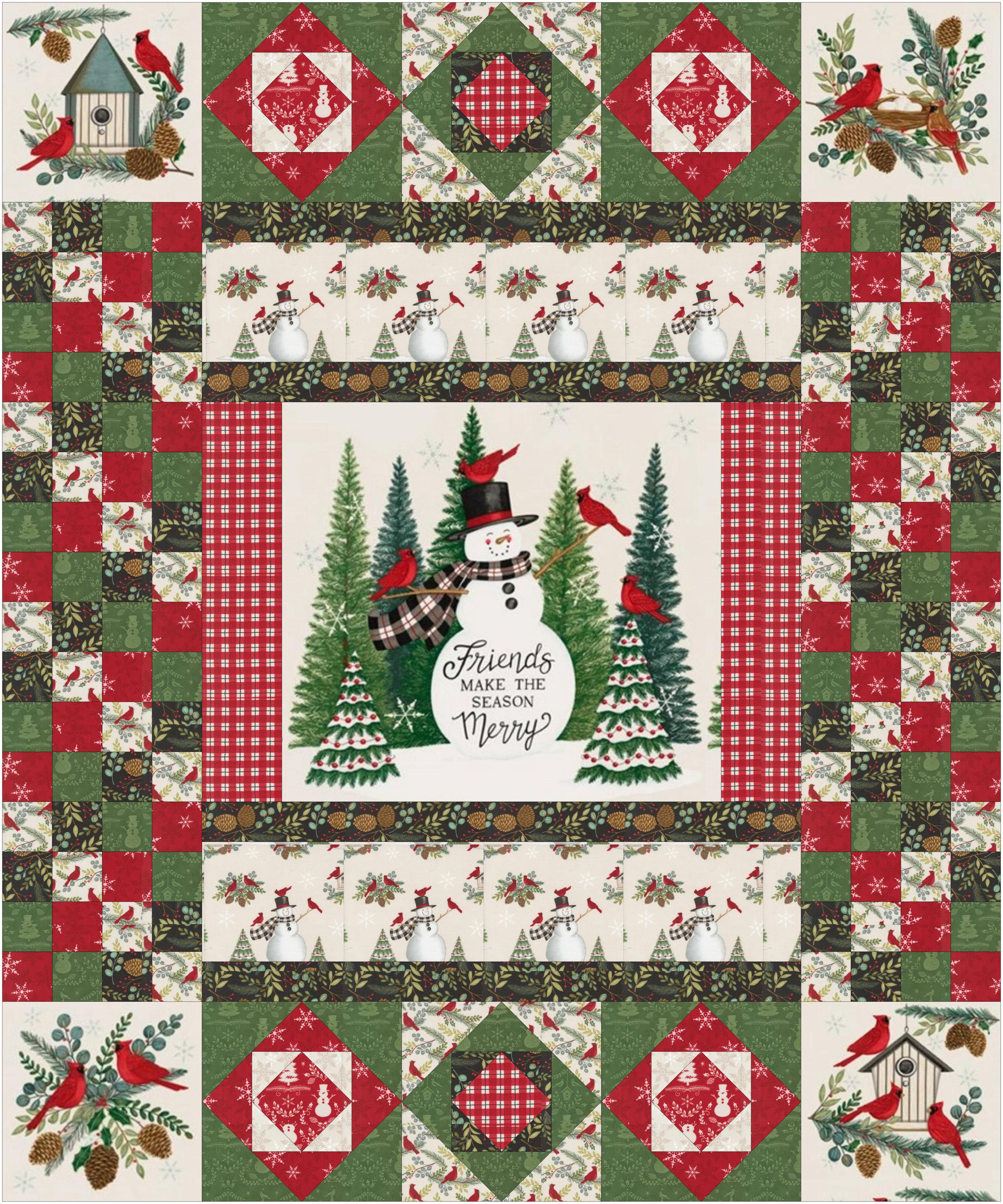 This pattern is for a cozy little lap quilt. Designed for the Winter Friends panel by Deb Strain, but you can use any similar sized panel OR a large print focus fabric. This pattern is beginner friendly and made for quilters. It’s quick to work up on a cold winter weekend – What if Spring is late? No problem!
